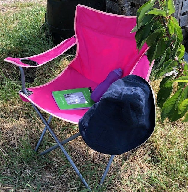 Speaking of nostalgia, I’ve been wallowing in it recently. A vague ache in my hip which I’d noticed over the last year or so has become chronic, making walking difficult. No allotment or yoga. No volunteer gardening or walks with friends. It’s frustrating, so I’ve started physiotherapy which is helping, and been for an X-ray (no results yet, after a whole month!) But I can sit and chat, read, write, sleep and eat; and it’s made me realise I’ve been doing far too much physical stuff. Everyone tells you to do more exercise, but in my case I need to do less. And learn how to REST. In the photo below I’d taken Matthew’s poems to read at my allotment, once I’d finished watering. Now I think I would have been better off cutting out the watering / digging / hoeing and read more. But hopefully it will improve and whatever happens I can enjoy the summer reading!
